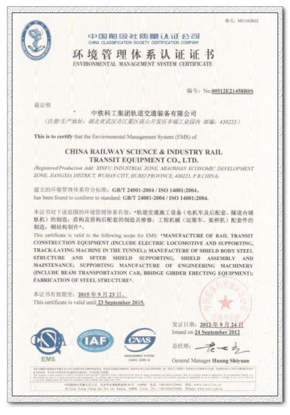环境管理体系认证证书 发布时间: 2017-06-01 20:07:02 发布网站: 中国地铁招标网