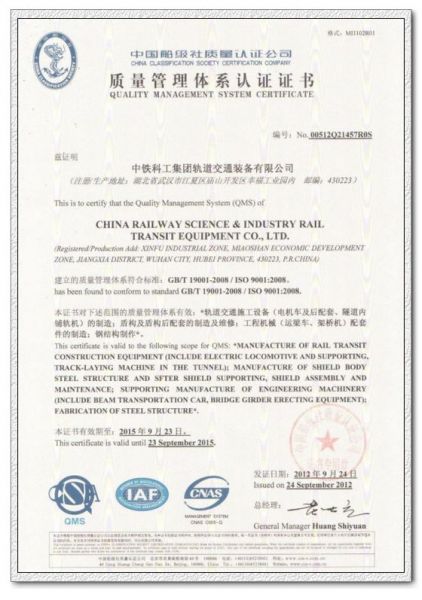 质量管理体系认证证书 发布时间: 2017-06-01 20:26:43 发布网站: 中国地铁招标网