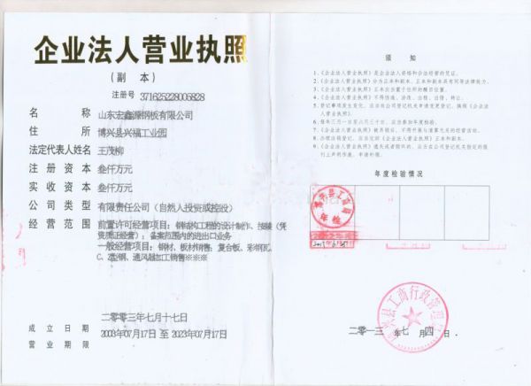 | 销售单位: 山东宏鑫源钢板有限公司 |