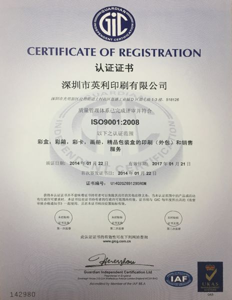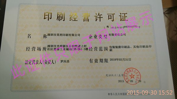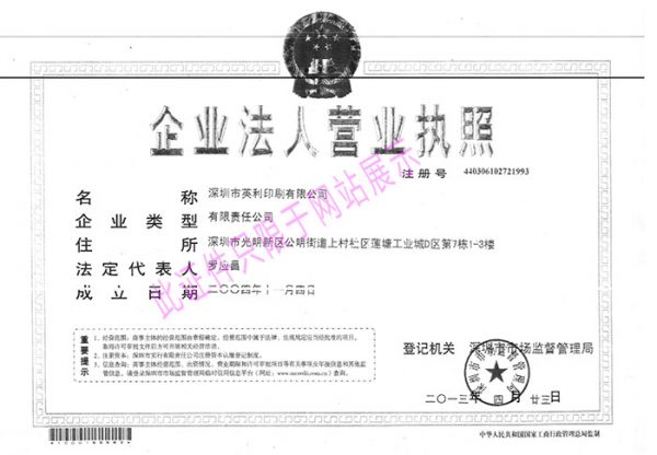 | 资质单位: 深圳市英利印刷有限公司 |